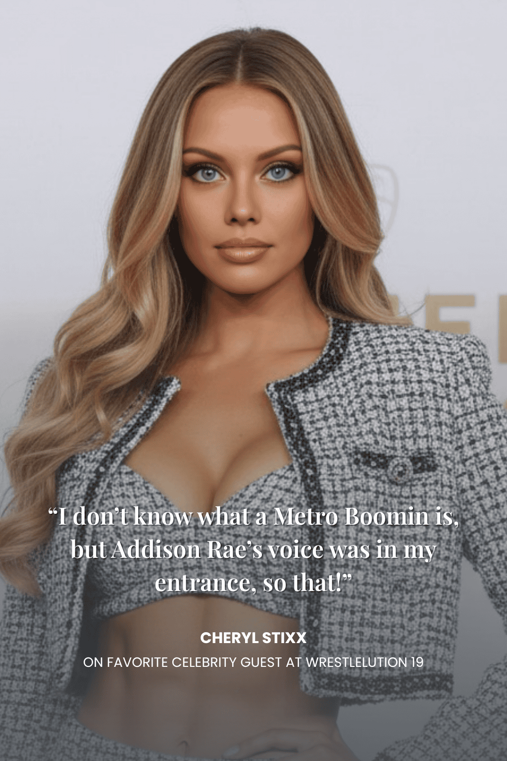 PopCulture Weekly: Cheryl Stixx Serves “Ultimate Y2K Fantasy” All Wrestlution Weekend One thing about Cheryl Stixx? She’s going to commit to the aesthetic. After debuting her now-iconic “Ultimate Y2K Fantasy” ring gear on Wrestlution Night 1 — complete with glittered butterfly wings, rhinestone cowgirl hat, and metallic pink accents — Cheryl kept the nostalgia going for Night 2. Posting to Instagram with the caption “Full Blumarine baby for night 2 🦋 thank you @blumarine for the dream”, the Pretty Stixx founder gave fans a softer, high-fashion take on her Wrestlution look. It’s all part of her brand evolution — from “The Vicious Showgirl” to the self-proclaimed Real Miss Cheryl. And judging by the comment section, fans are eating it up. As Cheryl put it herself in a recent interview, “This weekend is all about bringing my childhood dreams and fantasies to life — the sparkle, the butterflies, the drama… it’s everything little me imagined, just with a little more confidence and a lot more heart.” Wrestlution might be about titles for some, but for Cheryl? It’s about turning every appearance into a statement — and this weekend, she proved she’s also the MAIN EVENTER of the Y2K revival. Period.